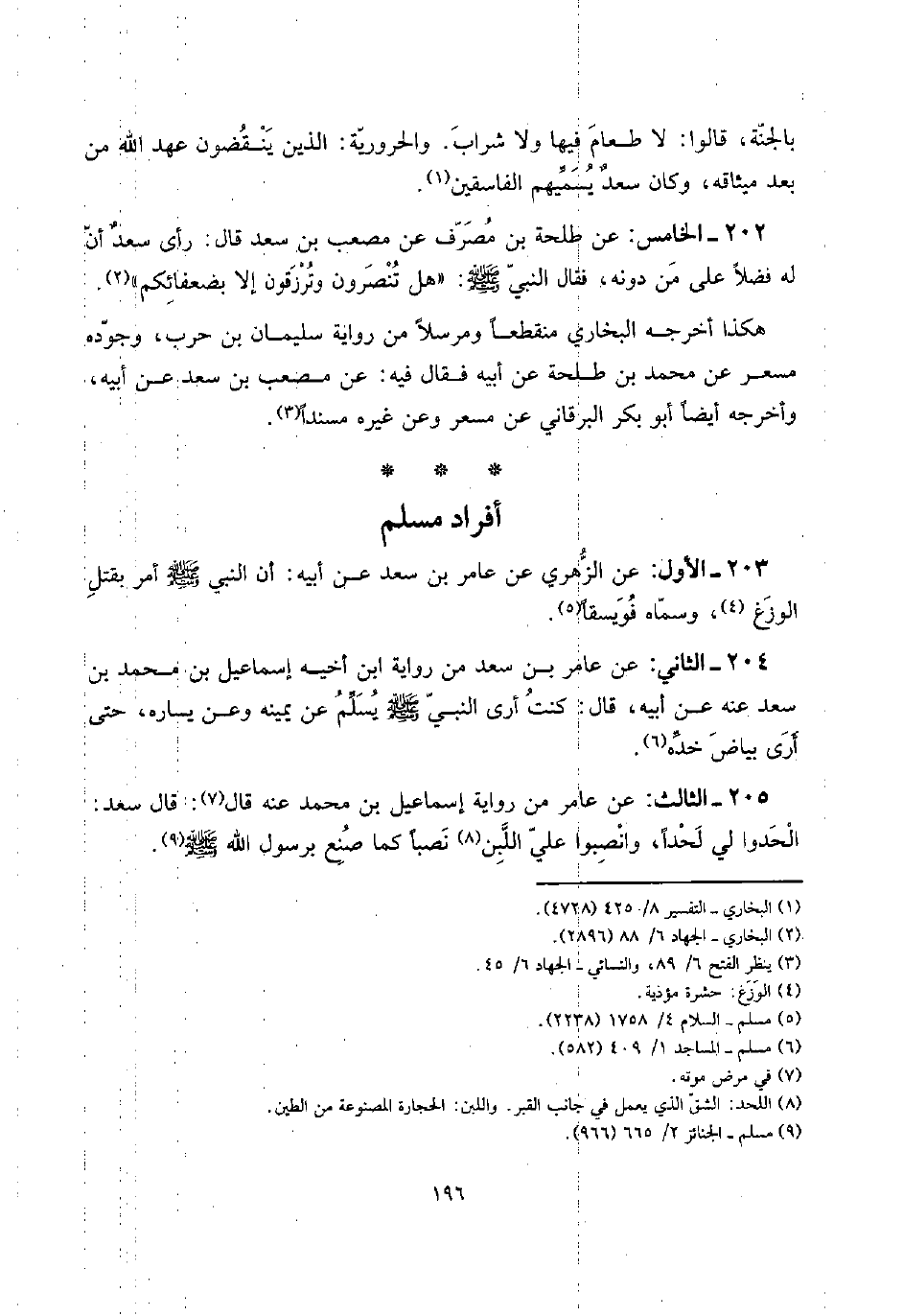 204 - الثَّانِي: عَن عَامر بن سعد من رِوَايَة ابْن أَخِيه إِسْمَاعِيل بن مُحَمَّد بن سعد عَنهُ عَن أَبِيه، قَالَ: كنت أرى النَّبِي صلى الله عَلَيْهِ وَسلم يسلم عَن يَمِينه وَعَن يسَاره، حَتَّى أرى بَيَاض خَدّه.