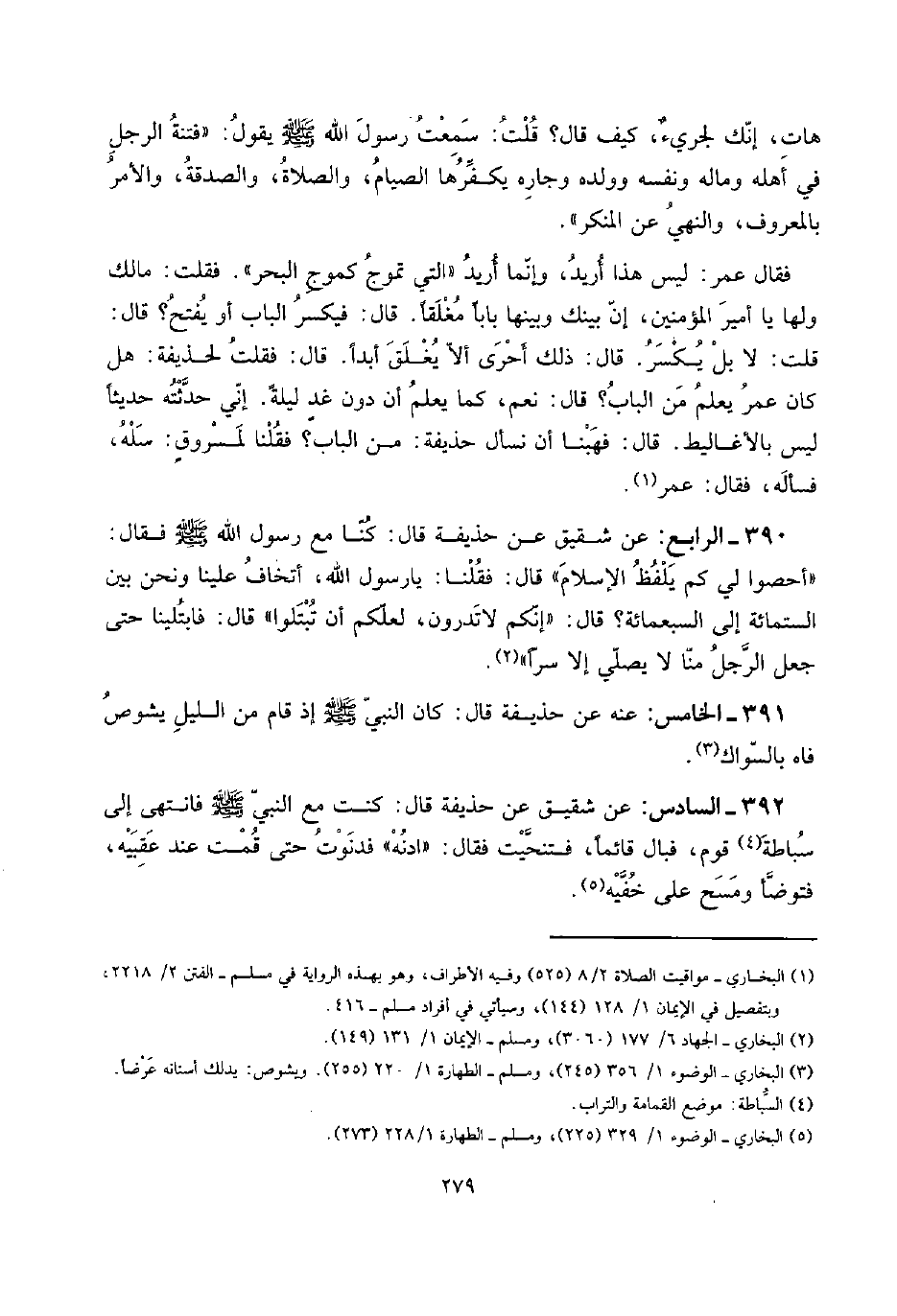 391 - الْخَامِس: عَنهُ عَن حُذَيْفَة قَالَ: كَانَ النَّبِي صلى الله عَلَيْهِ وَسلم إِذْ قَامَ من اللَّيْل يشوص فَاه بِالسِّوَاكِ.