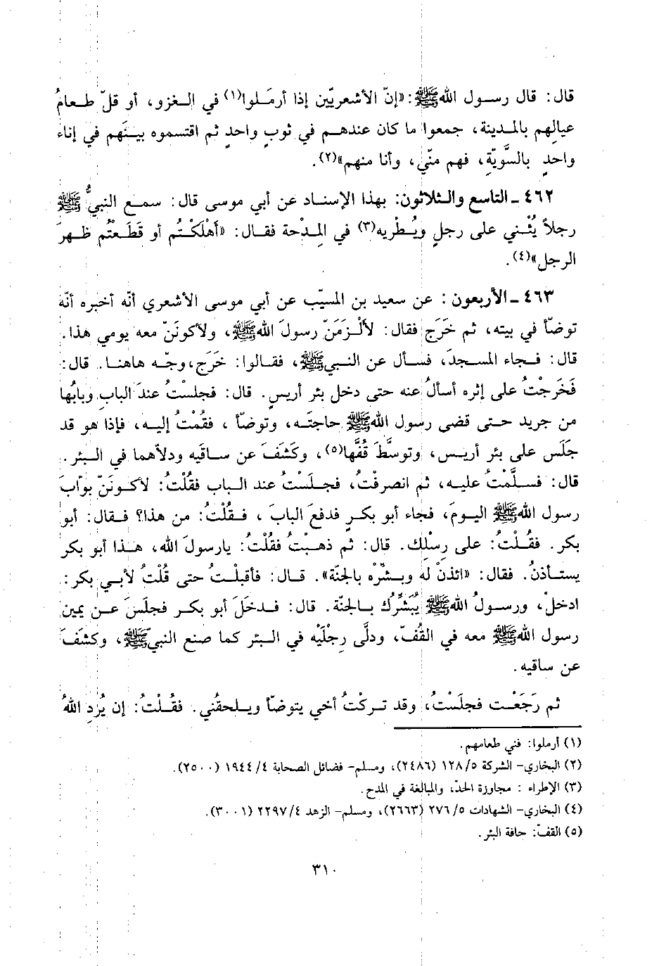 463 - الْأَرْبَعُونَ: عَن سعيد بن الْمسيب عَن أبي مُوسَى الْأَشْعَرِيّ أَنه أخبرهُ أَنه تَوَضَّأ فِي بَيته، ثمَّ خرج فَقَالَ: لألزمن رَسُول الله صلى الله عَلَيْهِ وَسلم، ولأكونن مَعَه يومي هَذَا.