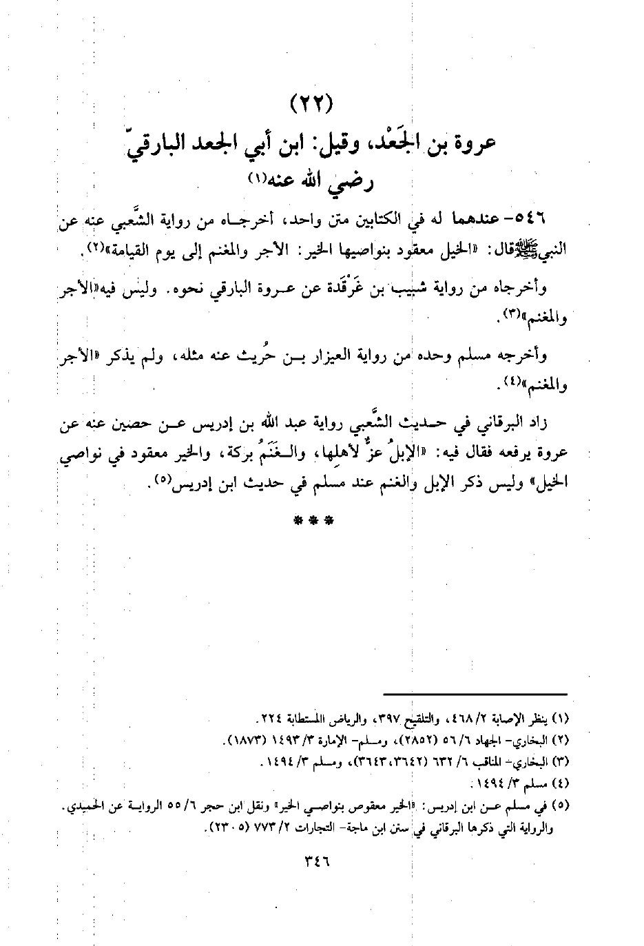 (22) عُرْوَة بن الْجَعْد، وَقيل: ابْن أبي الْجَعْد الْبَارِقي رَضِي الله عَنهُ