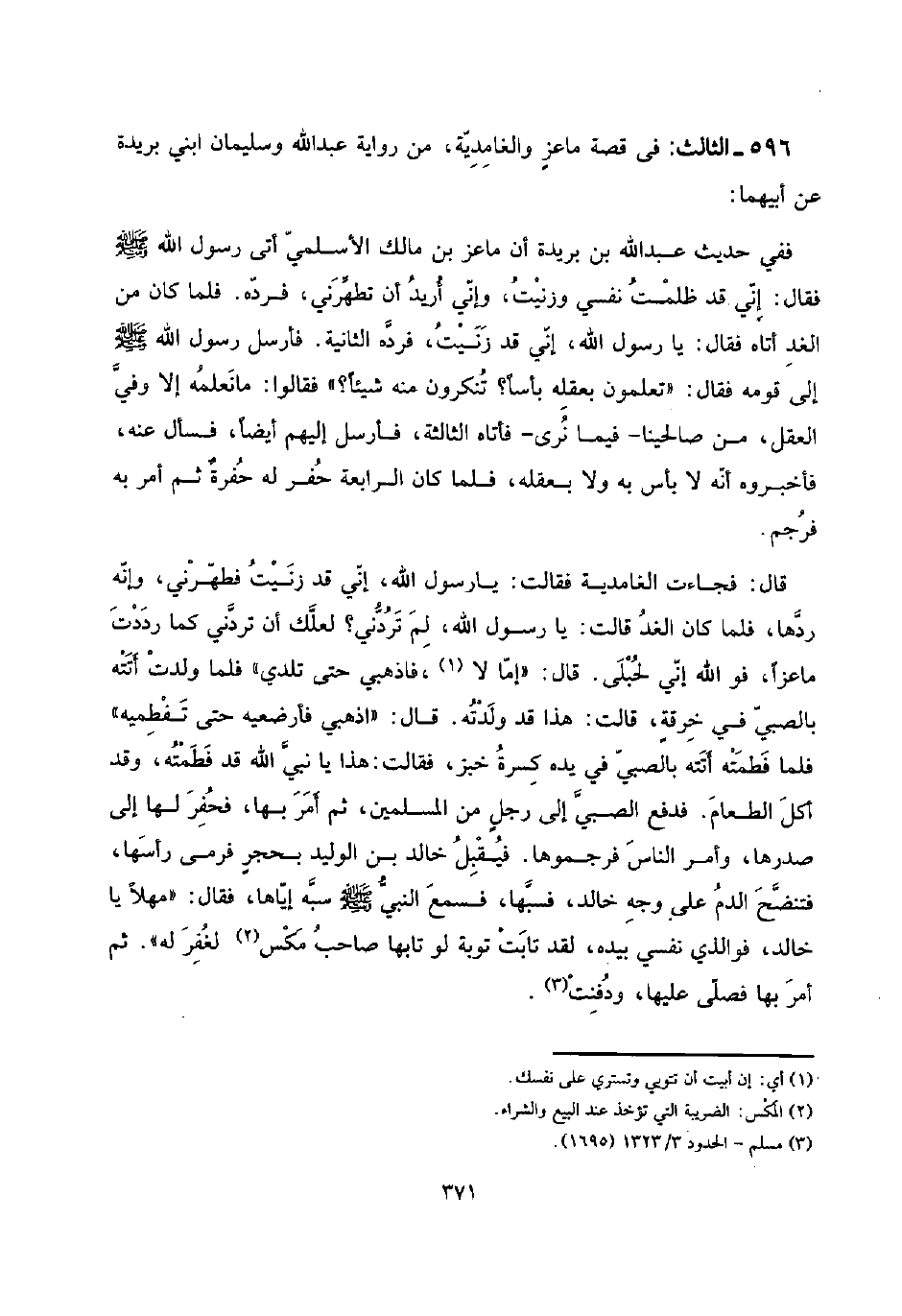 596 - الثَّالِث: فِي قصَّة ماعزٍ والغامدية، من رِوَايَة عبد الله وَسليمَان ابْني بُرَيْدَة عَن أَبِيهِمَا: