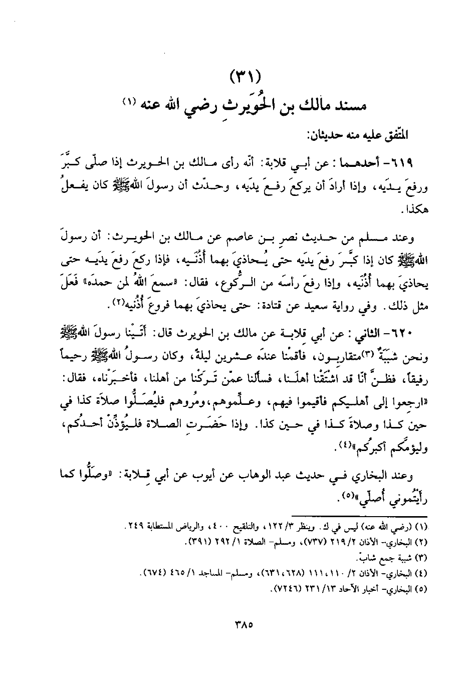 (31) مُسْند مَالك بن الْحُوَيْرِث رَضِي الله عَنهُ