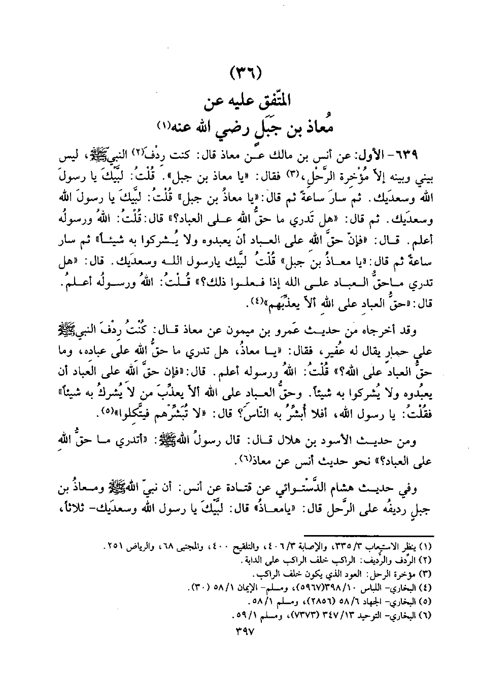 (36) الْمُتَّفق عَلَيْهِ عَن معَاذ بن جبلٍ رَضِي الله عَنهُ