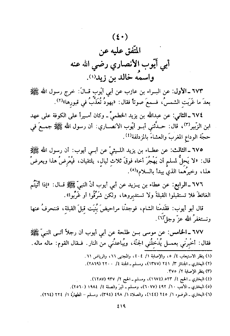 (40) الْمُتَّفق عَلَيْهِ عَن أبي أَيُّوب الْأنْصَارِيّ رَضِي الله عَنهُ واسْمه خَالِد بن زيد.