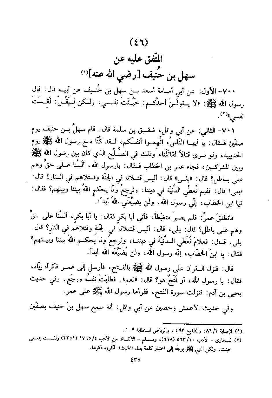 (46) الْمُتَّفق عَلَيْهِ عَن سهل بن حنيف [رَضِي الله عَنهُ]