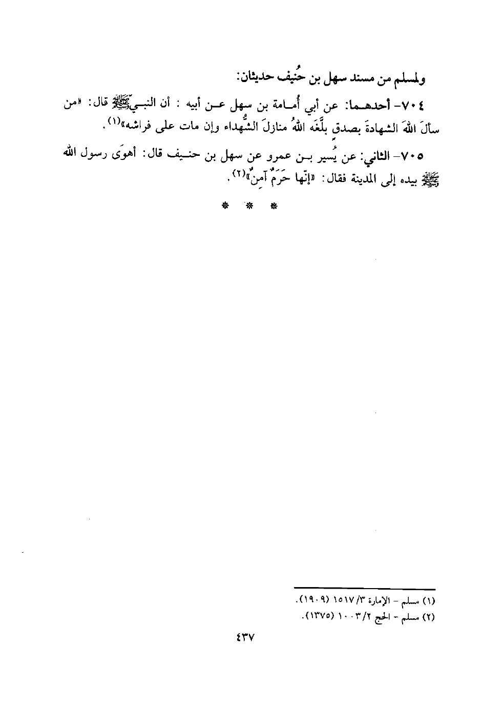 وَلمُسلم من مُسْند سهل بن حنيف حديثان: