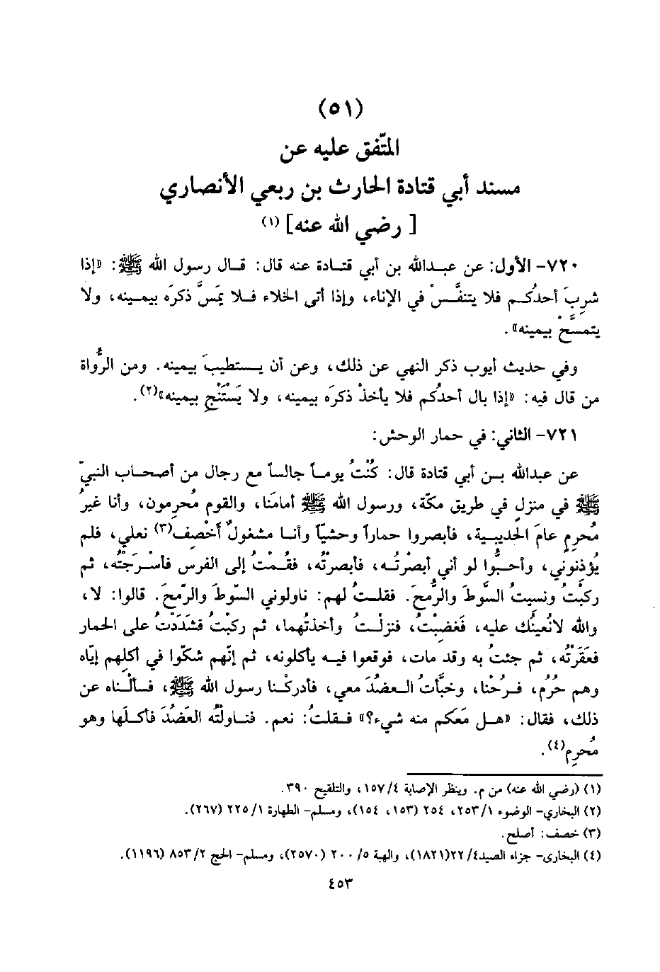 (51) الْمُتَّفق عَلَيْهِ عَن مُسْند أبي قَتَادَة الْحَارِث بن ربعي الْأنْصَارِيّ [رَضِي الله عَنهُ]
