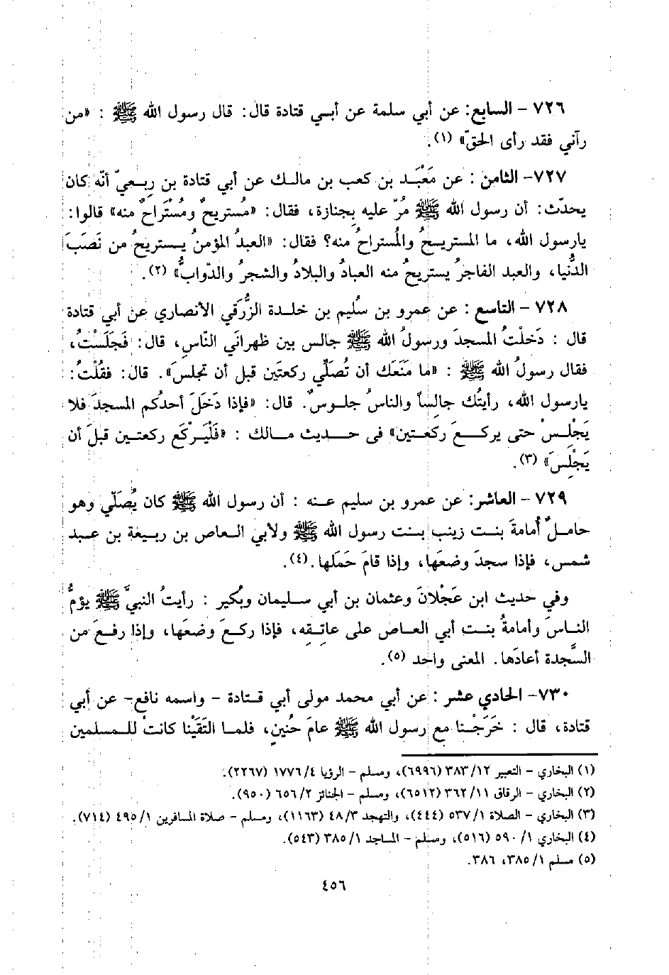 726 - السَّابِع: عَن أبي سَلمَة عَن أبي قَتَادَة قَالَ: قَالَ رَسُول الله صلى الله عَلَيْهِ وَسلم: " من رَآنِي فقد رأى الْحق ".