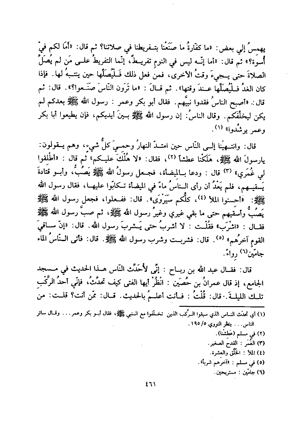 قَالَ: فَقَالَ عبد الله بن رَبَاح: إِنِّي لأحدث النَّاس هَذَا الحَدِيث فِي مَسْجِد الْجَامِع، إِذْ قَالَ عمرَان بن حُصَيْن: انْظُر ايها الْفَتى كَيفَ تحدث، فَإِنِّي أحد الركب تِلْكَ اللَّيْلَة. قَالَ: قلت: فَأَنت أعلم بِالْحَدِيثِ. قَالَ: مِمَّن أَنْت؟ قلت: من