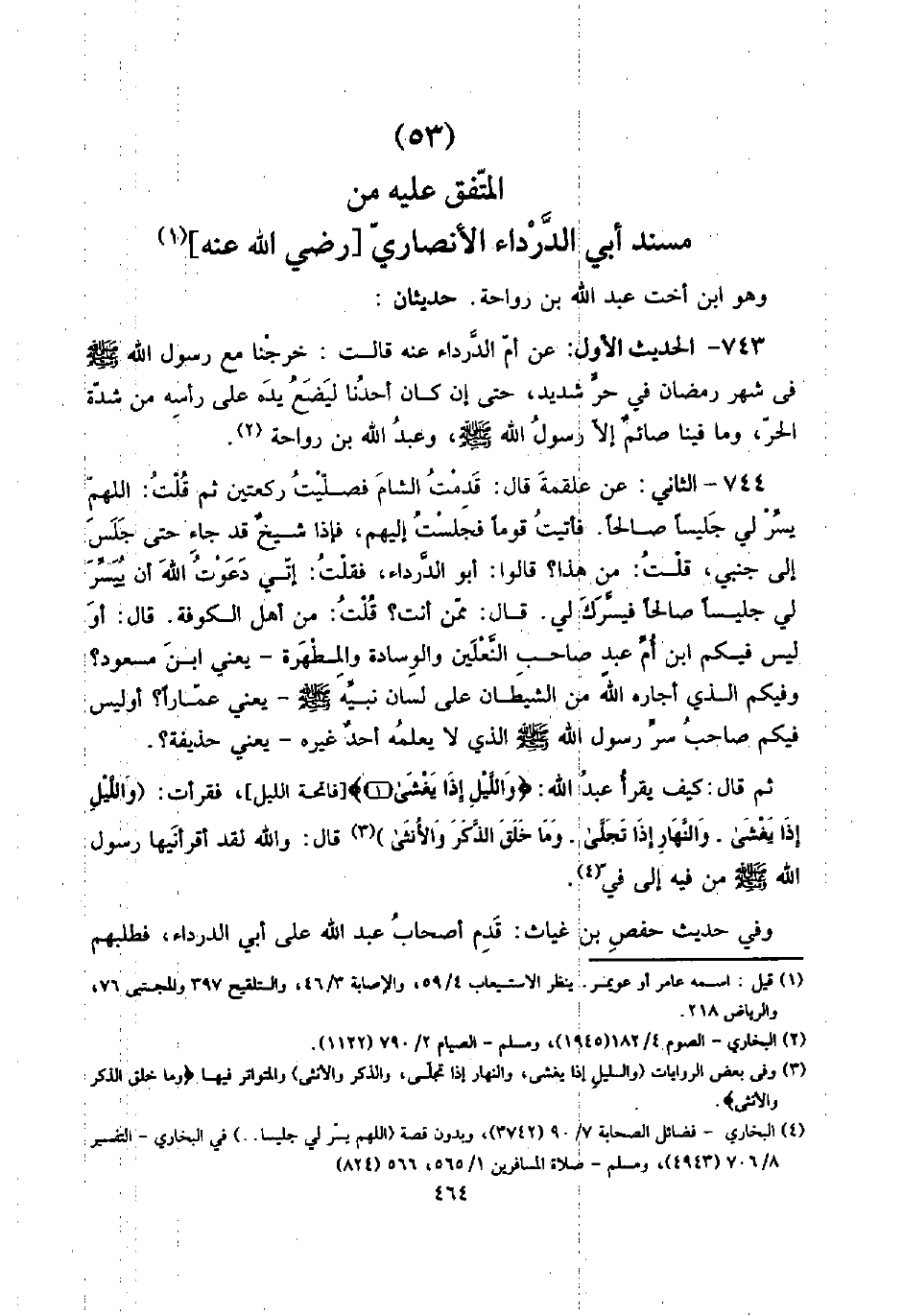(53) الْمُتَّفق عَلَيْهِ من مُسْند أبي الدَّرْدَاء الْأنْصَارِيّ [رَضِي الله عَنهُ]