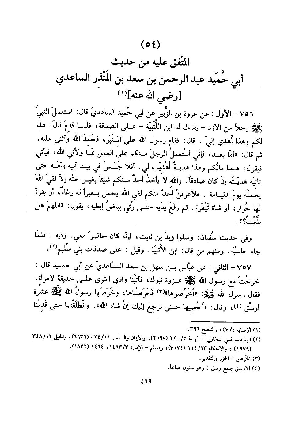 (54) الْمُتَّفق عَلَيْهِ من حَدِيث أبي حميد عبد الرَّحْمَن بن سعد بن الْمُنْذر السَّاعِدِيّ [رَضِي الله عَنهُ]