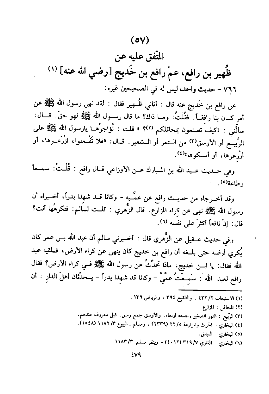766 - حَدِيث وَاحِد، لَيْسَ لَهُ فِي الصَّحِيحَيْنِ غَيره: عَن رَافع بن خديج عَنهُ قَالَ: أَتَانِي ظهير فَقَالَ: