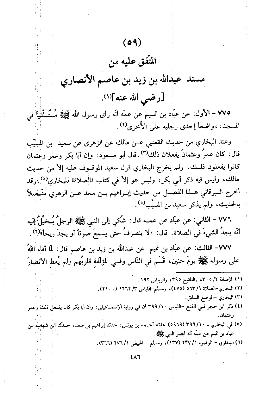 (59) الْمُتَّفق عَلَيْهِ من مُسْند عبد الله بن زيد بن عَاصِم الْأنْصَارِيّ [رَضِي الله عَنهُ] .