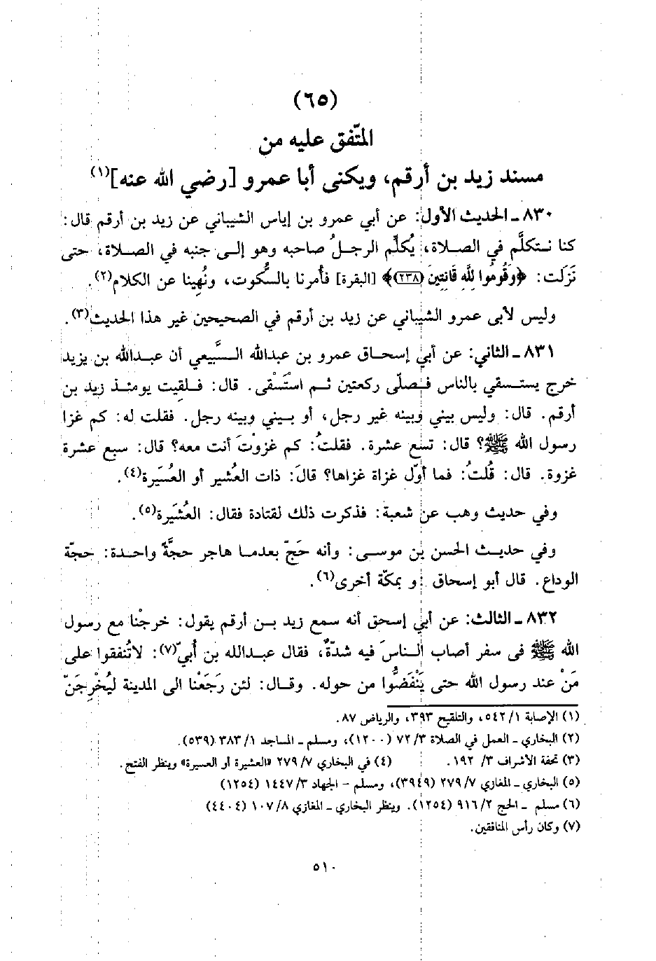(65) الْمُتَّفق عَلَيْهِ من مُسْند زيد بن أَرقم، ويكنى أَبَا عَمْرو [رَضِي الله عَنهُ]