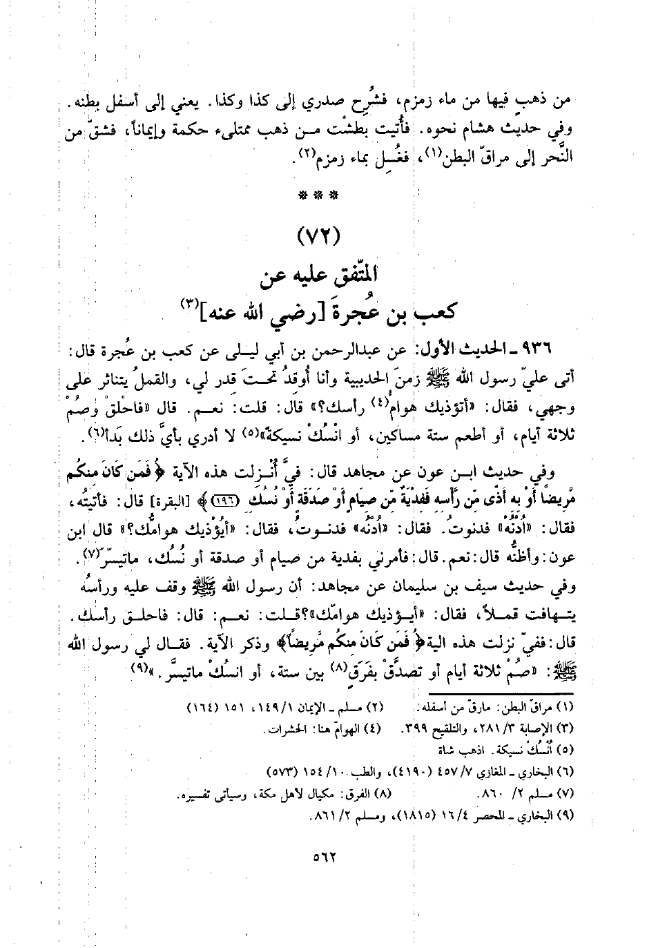 (72) الْمُتَّفق عَلَيْهِ عَن كَعْب بن عجْرَة [رَضِي الله عَنهُ]