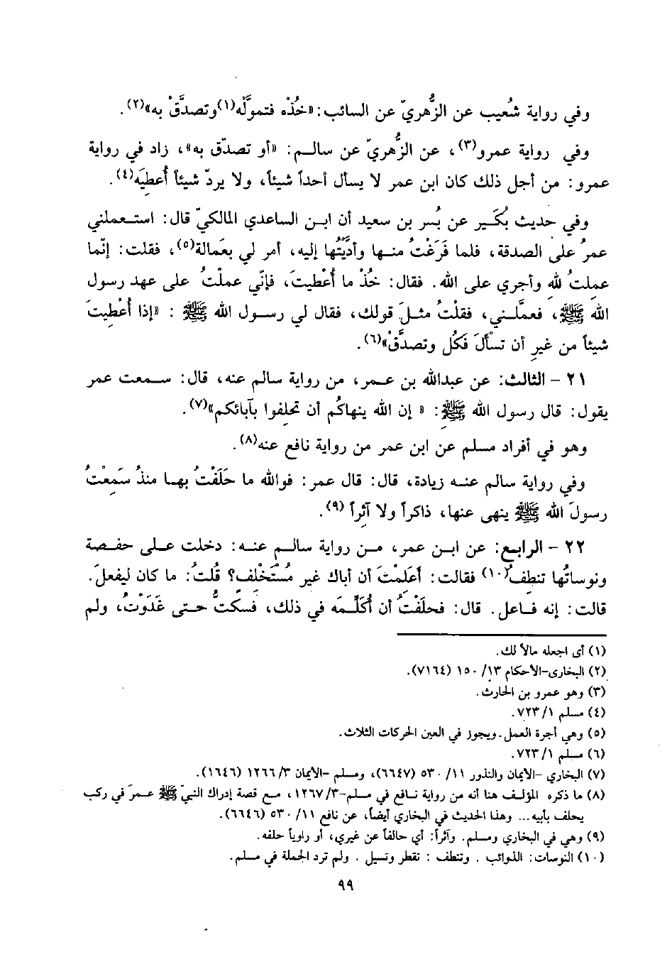22 - الرَّابِع: عَن ابْن عمر، من رِوَايَة سَالم عَنهُ: دخلت على حَفْصَة ونوساتها تنطف فَقَالَت: أعلمت أَن أَبَاك غير مستخلفٍ؟ قلت: مَا كَانَ ليفعل. قَالَت: إِنَّه فَاعل. قَالَ: فَحَلَفت أَن ُأكَلِّمهُ فِي ذَلِك، فَسكت حَتَّى غَدَوْت، وَلم