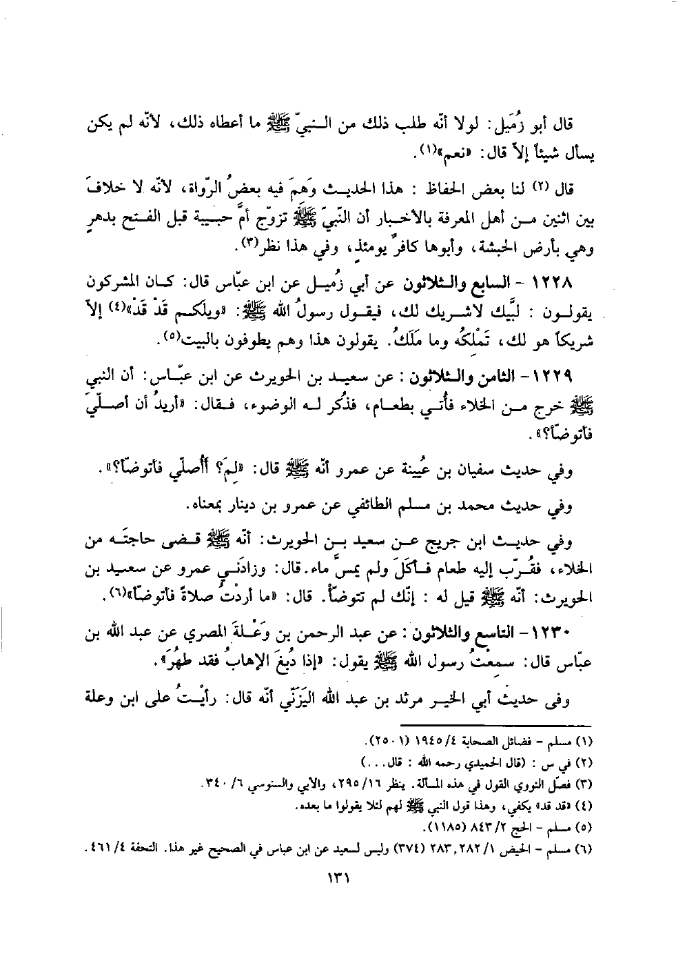 1229 - الثَّامِن وَالثَّلَاثُونَ: عَن سعيد بن الْحُوَيْرِث عَن ابْن عَبَّاس: أَن النَّبِي صلى الله عَلَيْهِ وَسلم خرج من الْخَلَاء فَأتي بِطَعَام، فَذكر لَهُ الْوضُوء، فَقَالَ: " أُرِيد أَن أُصَلِّي فأتوضأ؟ ".