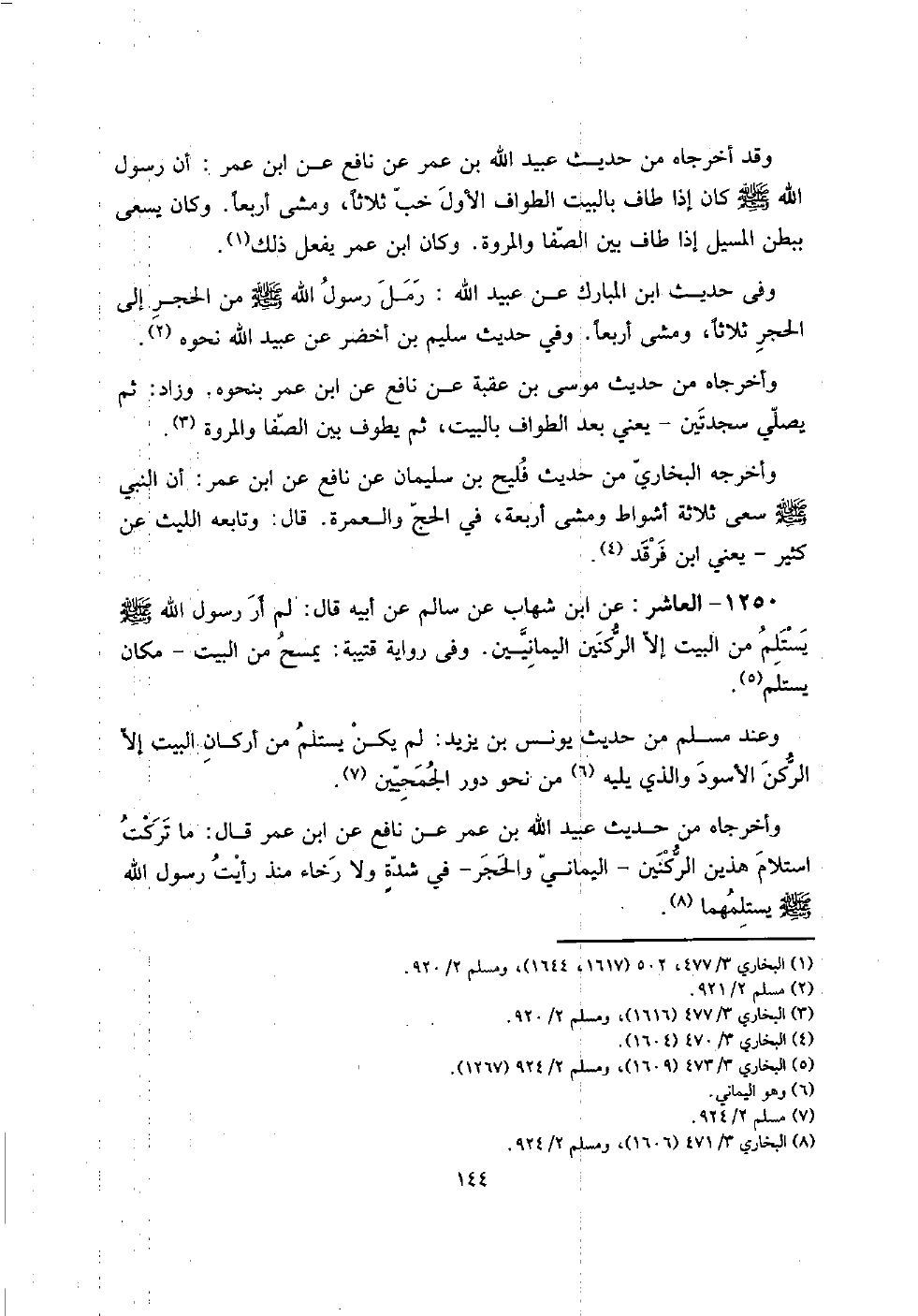 أَن النَّبِي صلى الله عَلَيْهِ وَسلم سعى ثَلَاثَة أَشْوَاط وَمَشى أَرْبَعَة، فِي الْحَج وَالْعمْرَة. قَالَ: وَتَابعه اللَّيْث عَن كثير - يَعْنِي ابْن فرقد.