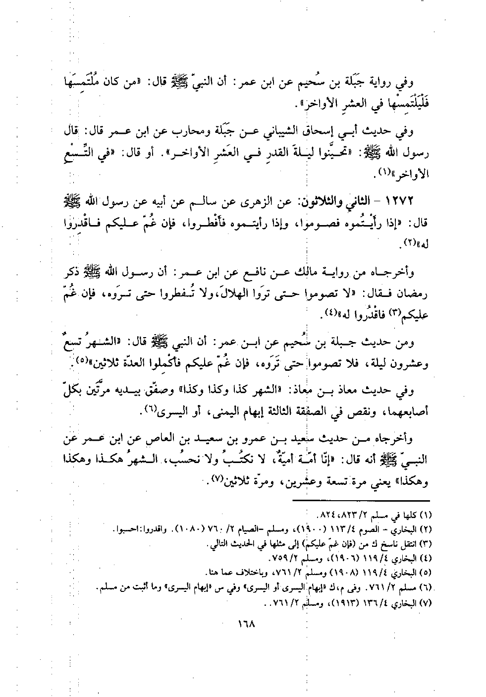1272 - الثَّانِي وَالثَّلَاثُونَ: عَن الزُّهْرِيّ عَن سَالم عَن أَبِيه عَن رَسُول الله صلى الله عَلَيْهِ وَسلم قَالَ: " إِذا رَأَيْتُمُوهُ فصوموا، وَإِذا رَأَيْتُمُوهُ فأفطروا، فَإِن غم عَلَيْكُم فاقدروا لَهُ ".