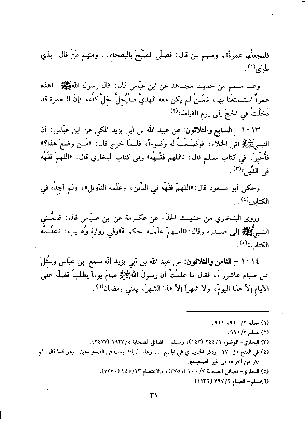 1013 - السَّابِع وَالثَّلَاثُونَ: عَن عبيد الله بن أبي يزِيد الْمَكِّيّ عَن ابْن عَبَّاس: أَن النَّبِي صلى الله عَلَيْهِ وَسلم أَتَى الْخَلَاء، فَوضعت لَهُ وضُوءًا، فَلَمَّا خرج قَالَ: " من وضع هَذَا؟ " فَأخْبر. فِي كتاب مُسلم قَالَ: " اللَّهُمَّ فقهه " وَفِي كتاب البُخَارِيّ قَالَ: " اللَّهُمَّ فقهه فِي الدّين ".