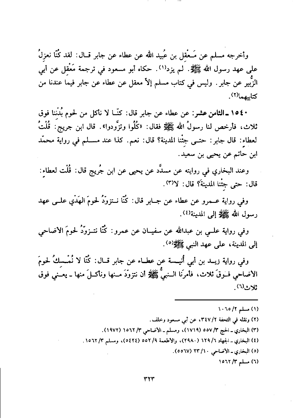 1540 - الثَّامِن عشر: عَن عَطاء عَن جَابر قَالَ: كُنَّا لَا نَأْكُل من لُحُوم بدننا فَوق ثَلَاث، فأرخص لنا رَسُول الله صلى الله عَلَيْهِ وَسلم فَقَالَ: " كلوا وتزودوا ". قَالَ ابْن جريج: قلت لعطاء: قَالَ جَابر: حَتَّى جِئْنَا الْمَدِينَة؟ قَالَ: نعم. كَذَا عِنْد مُسلم فِي رِوَايَة مُحَمَّد ابْن حَاتِم عَن يحيى بن سعيد.