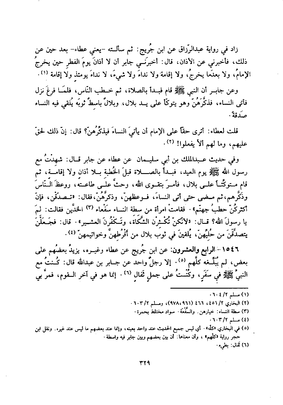 ثمَّ سَأَلته - يَعْنِي عَطاء - بعد حِين عَن ذَلِك، فَأَخْبرنِي عَن الْأَذَان، قَالَ: أَخْبرنِي جَابر أَن لَا أَذَان يَوْم الْفطر حِين يخرج الإِمَام، وَلَا بَعْدَمَا يخرج، وَلَا إِقَامَة وَلَا نِدَاء وَلَا شَيْء، لَا نِدَاء يومئذٍ وَلَا إِقَامَة.
