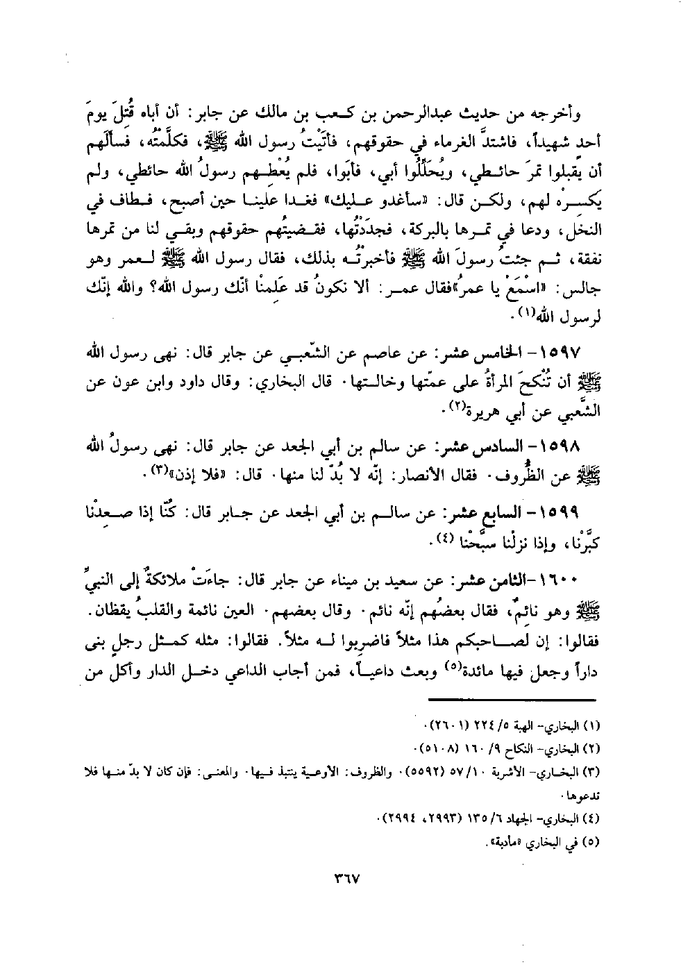 1600 - الثَّامِن عشر: عَن سعيد بن ميناء عَن جَابر قَالَ: جَاءَت ملائكةٌ إِلَى النَّبِي صلى الله عَلَيْهِ وَسلم وَهُوَ نائمٌ، فَقَالَ بَعضهم إِنَّه نَائِم. وَقَالَ بَعضهم. الْعين نَائِمَة وَالْقلب يقظان.
