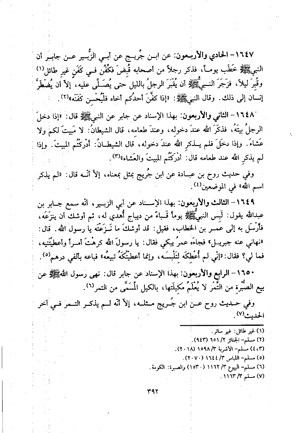1647 - الْحَادِي وَالْأَرْبَعُونَ: عَن ابْن جريج عَن أبي الزبير عَن جَابر أَن النَّبِي صلى الله عَلَيْهِ وَسلم خطب يَوْمًا، فَذكر رجلا من أَصْحَابه قبض فَكفن فِي كفنٍ غير طائل وقبر لَيْلًا، فزجر النَّبِي صلى الله عَلَيْهِ وَسلم أَن يقبر الرجل بِاللَّيْلِ حَتَّى يصلى عَلَيْهِ، إِلَّا أَن يضْطَر إِنْسَان إِلَى ذَلِك. وَقَالَ النَّبِي صلى الله عَلَيْهِ وَسلم: " إِذا كفن أحدكُم أَخَاهُ فليحسن كَفنه ".