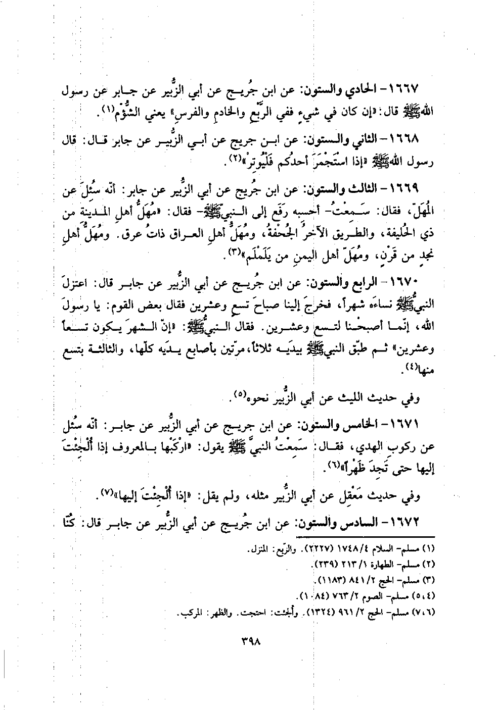 1672 - السَّادِس وَالسِّتُّونَ: عَن ابْن جريج عَن أبي الزبير عَن جَابر قَالَ: كُنَّا