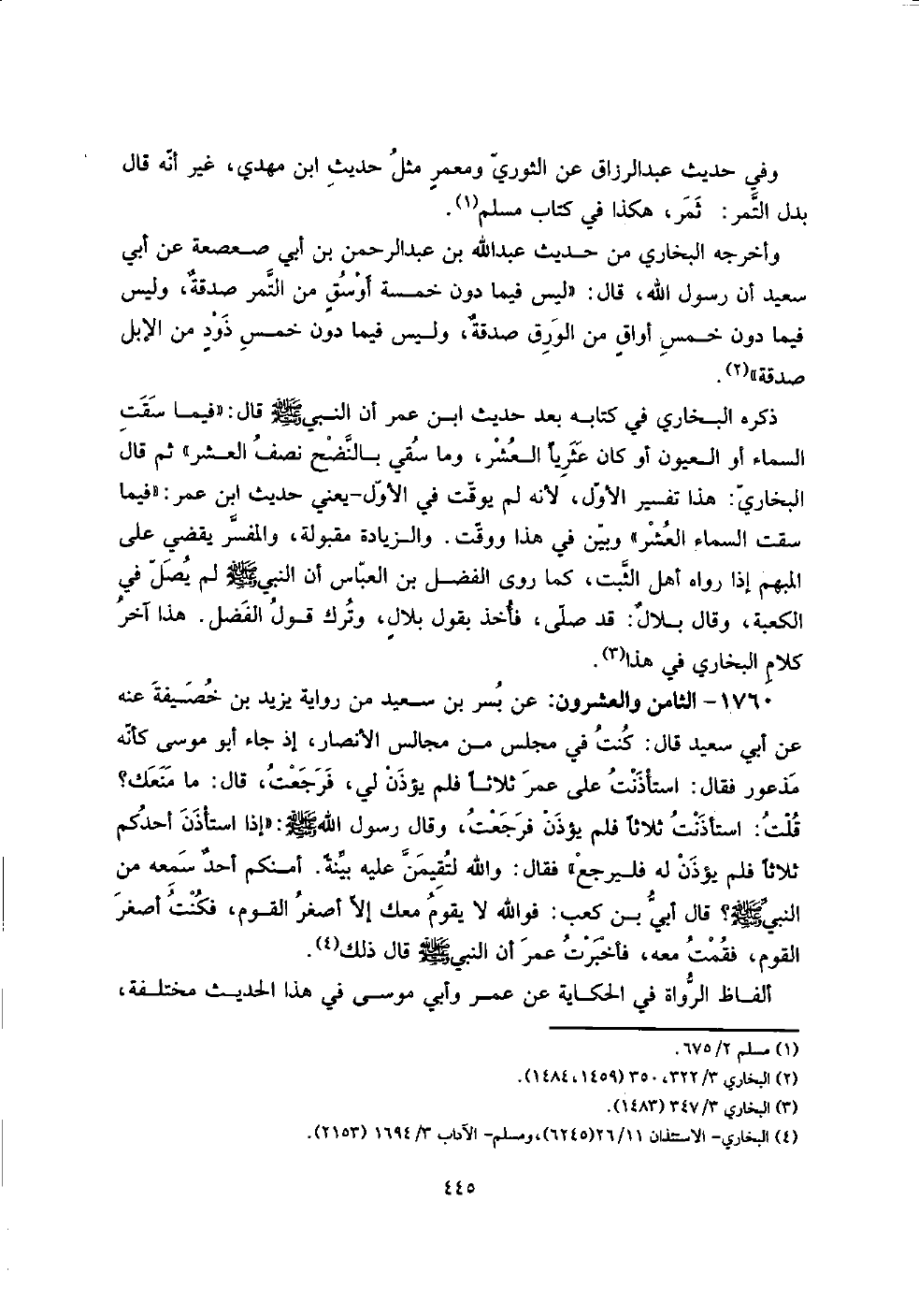 أَن رَسُول الله، قَالَ: " لَيْسَ فِيمَا دون خَمْسَة أوسقٍ من التَّمْر صدقةٌ، وَلَيْسَ فِيمَا دون خمس أواقٍ من الْوَرق صدقةٌ، وَلَيْسَ فِيمَا دون خمس ذودٍ من الْإِبِل صَدَقَة ".