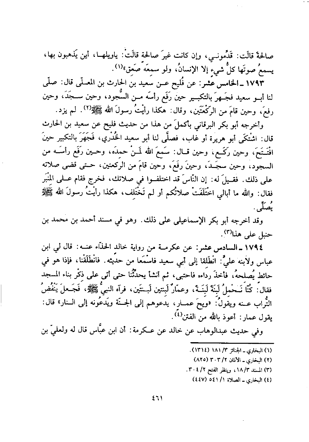 1793 - الْخَامِس عشر: عَن فليح عَن سعيد بن الْحَارِث بن الْمُعَلَّى قَالَ: صلى لنا أَبُو سعيد فجهر بِالتَّكْبِيرِ حِين رفع رَأسه من السُّجُود، وَحين سجد، وَحين رفع، وَحين قَامَ من الرَّكْعَتَيْنِ، وَقَالَ: هَكَذَا رَأَيْت رَسُول الله صلى الله عَلَيْهِ وَسلم. لم يزدْ.