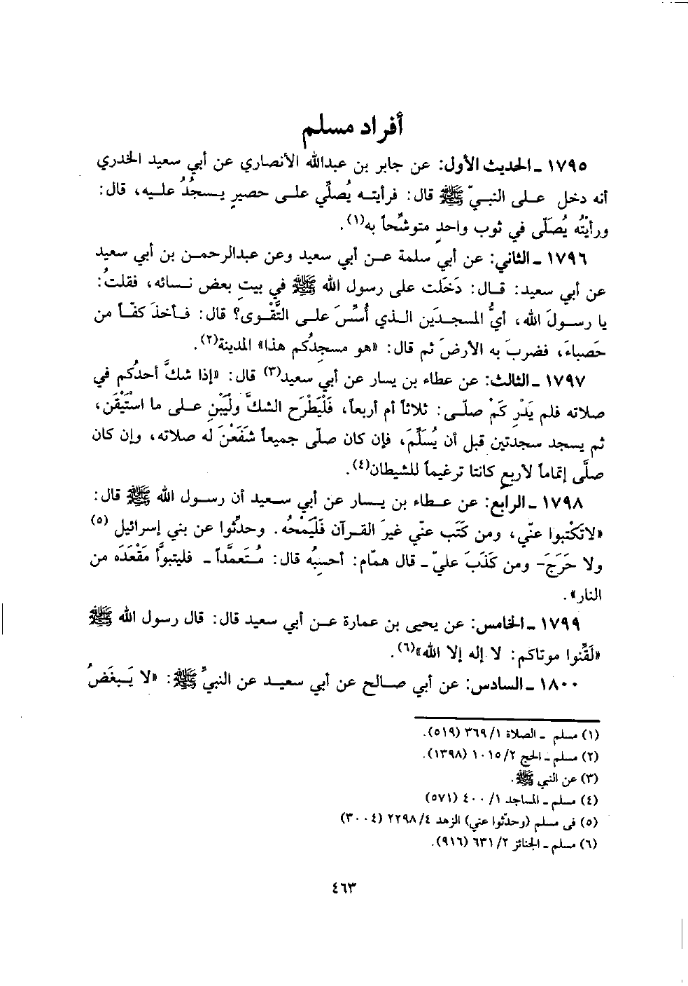 1800 - السَّادِس: عَن أبي صَالح عَن أبي سعيد عَن النَّبِي صلى الله عَلَيْهِ وَسلم: " لَا يبغض