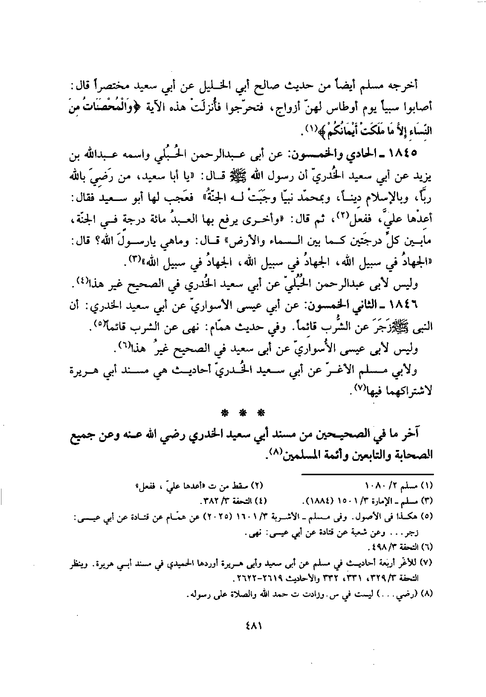 آخر مَا فِي الصَّحِيحَيْنِ من مُسْند أبي سعيد الْخُدْرِيّ رَضِي الله عَنهُ وَعَن جَمِيع الصَّحَابَة وَالتَّابِعِينَ وأئمة الْمُسلمين.