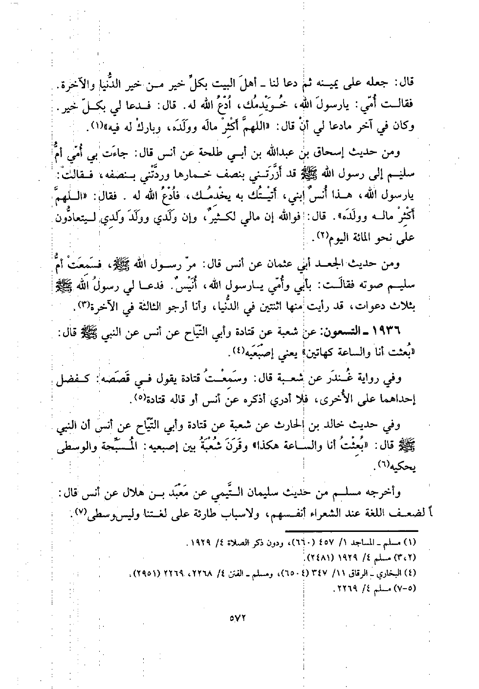 1936 - التِّسْعُونَ عَن شُعْبَة عَن قَتَادَة وَأبي التياح عَن أنس عَن النَّبِي صلى الله عَلَيْهِ وَسلم قَالَ: " بعثت أَنا والساعة كهاتين " يَعْنِي إصبعيه.