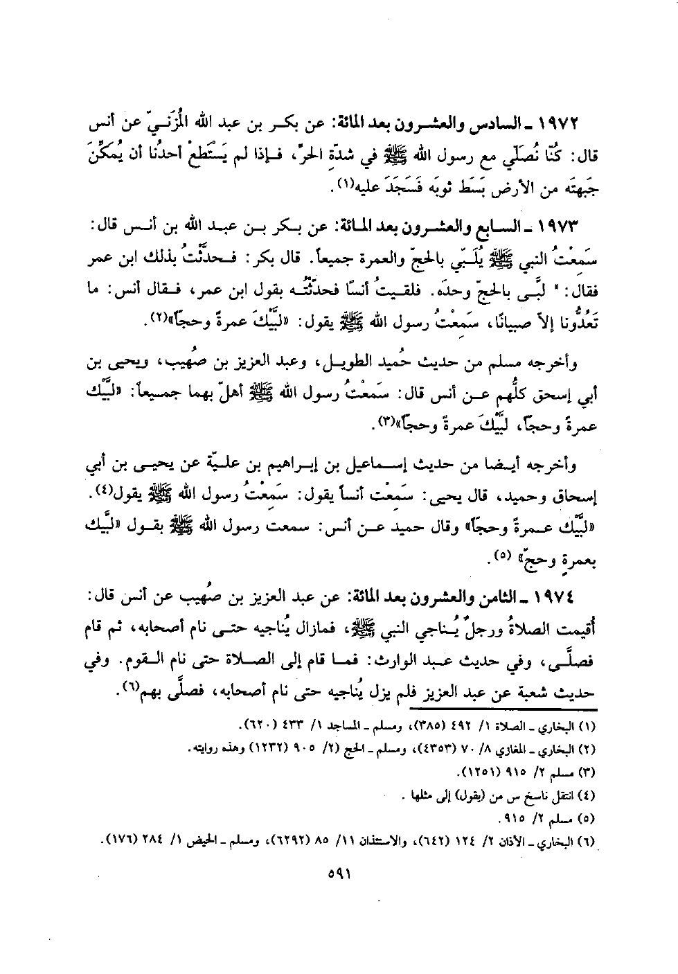 1972 - السَّادِس وَالْعشْرُونَ بعد الْمِائَة: عَن بكر بن عبد الله الْمُزنِيّ عَن أنس قَالَ: كُنَّا نصلي مَعَ رَسُول الله صلى الله عَلَيْهِ وَسلم فِي شدَّة الْحر، فَإِذا لم يسْتَطع أَحَدنَا أَن يُمكن جَبهته من الأَرْض بسط ثَوْبه فَسجدَ عَلَيْهِ.