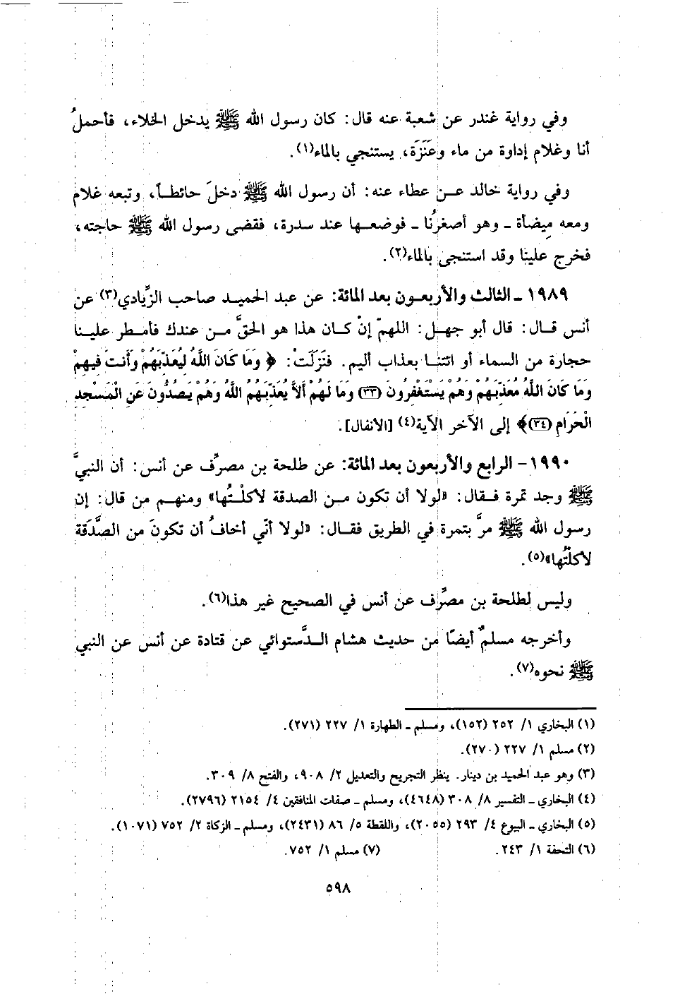 1990 - الرَّابِع وَالْأَرْبَعُونَ بعد الْمِائَة: عَن طَلْحَة بن مصرف عَن أنس: أَن النَّبِي صلى الله عَلَيْهِ وَسلم وجد تَمْرَة فَقَالَ: " لَوْلَا أَن تكون من الصَّدَقَة لأكلتها " وَمِنْهُم من قَالَ: إِن رَسُول الله صلى الله عَلَيْهِ وَسلم مر بتمرة فِي الطَّرِيق فَقَالَ: " لَوْلَا أَنِّي أَخَاف أَن تكون من الصَّدَقَة لأكلتها ".