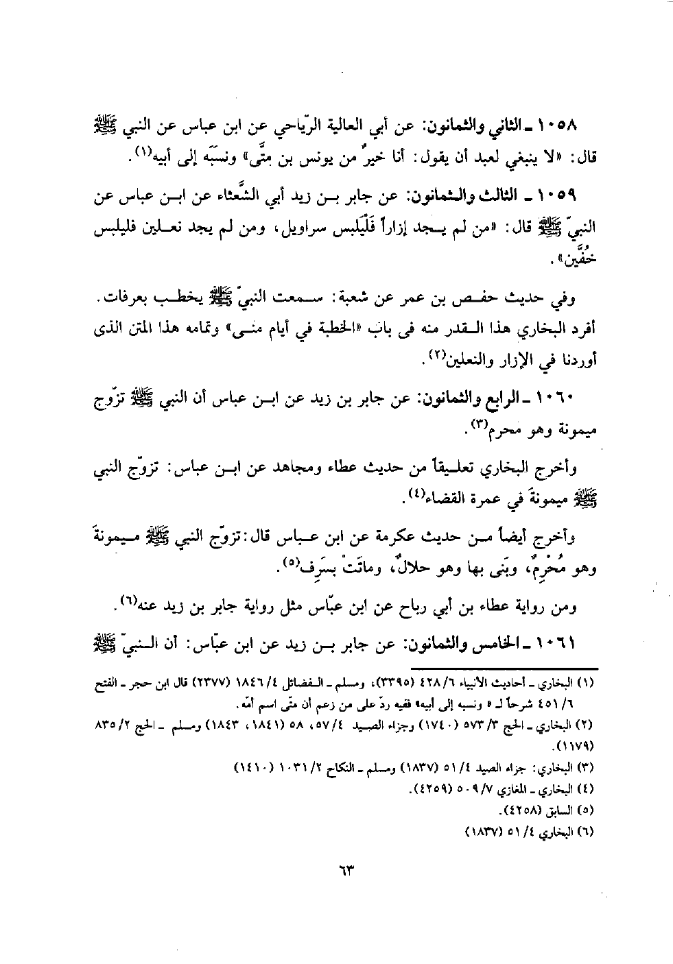 1060 - الرَّابِع وَالثَّمَانُونَ: عَن جَابر بن زيد عَن ابْن عَبَّاس أَن النَّبِي صلى الله عَلَيْهِ وَسلم تزوج مَيْمُونَة وَهُوَ محرم.