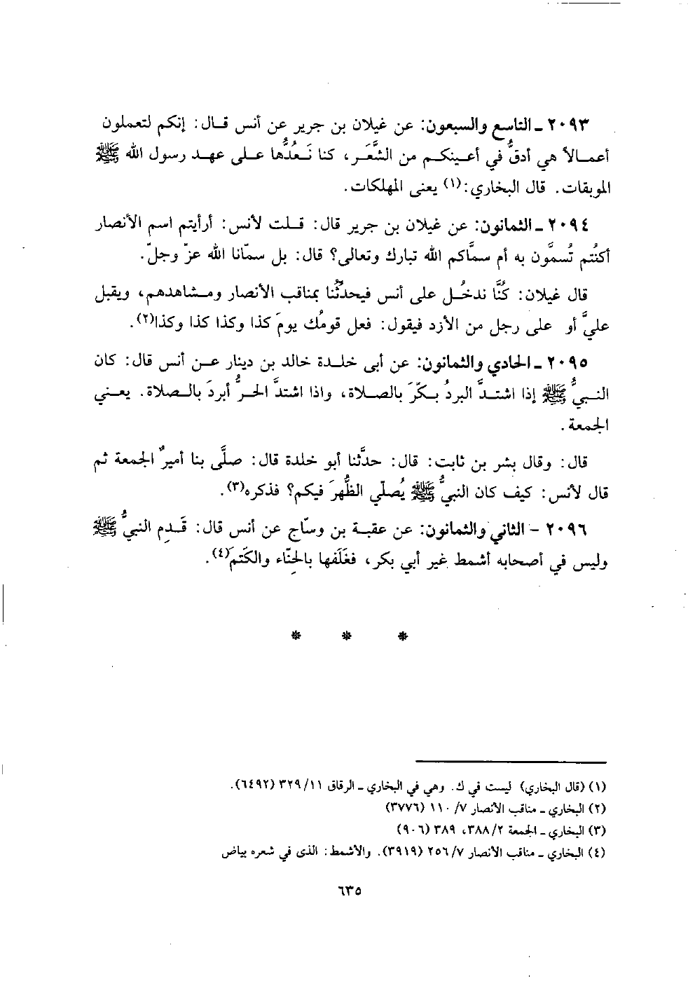 2093 - التَّاسِع وَالسَّبْعُونَ: عَن غيلَان بن جرير عَن أنس قَالَ: إِنَّكُم لتعملون أعمالاً هِيَ أدق فِي أعينكُم من الشّعْر، كُنَّا نعدها على عهد رَسُول الله صلى الله عَلَيْهِ وَسلم الموبقات. قَالَ البُخَارِيّ: يَعْنِي المهلكات.