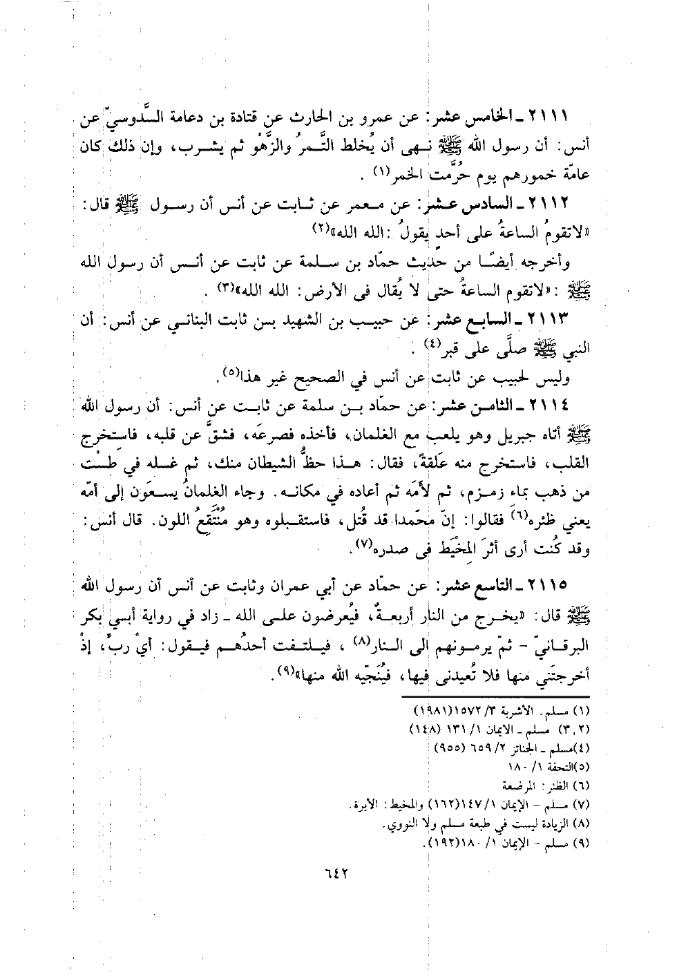 2112 - السَّادِس عشر: عَن معمر عَن ثَابت عَن أنس أَن رَسُول الله صلى الله عَلَيْهِ وَسلم قَالَ: " لَا تقوم السَّاعَة على أحدٍ يَقُول: الله الله "