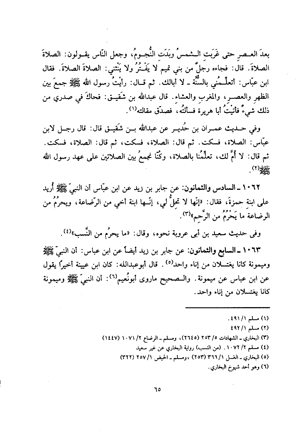 1063 - السَّابِع وَالثَّمَانُونَ: عَن جَابر بن زيد أَيْضا عَن ابْن عَبَّاس: أَن النَّبِي صلى الله عَلَيْهِ وَسلم ومَيْمُونَة كَانَا يفتسلان من إِنَاء وَاحِد. قَالَ أَبُو عبد الله: كَانَ ابْن عُيَيْنَة أخيراً يَقُول عَن ابْن عَبَّاس عَن مَيْمُونَة. وَالصَّحِيح مَا روى أَبُو نعيم. أَن النَّبِي صلى الله عَلَيْهِ وَسلم ومَيْمُونَة كَانَا يغتسلان من إِنَاء وَاحِد.