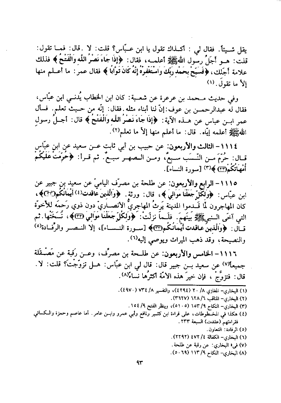 1114 - الثَّالِث وَالْأَرْبَعُونَ: عَن حبيب بن أبي ثَابت عَن سعيد عَن ابْن عَبَّاس قَالَ: حرم من النّسَب سبع، وَمن الصهر سبعٌ. ثمَّ قَرَأَ: {حرمت عَلَيْكُم أُمَّهَاتكُم} [سُورَة النِّسَاء] .