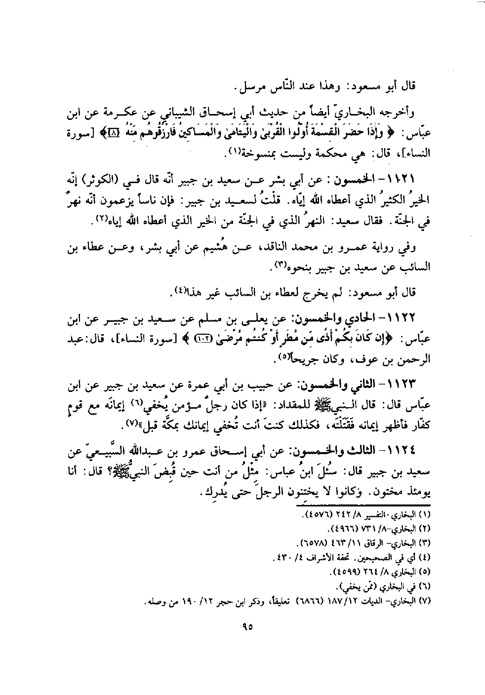 1121 - الْخَمْسُونَ: عَن أبي بشر عَن سعيد بن جُبَير أَنه قَالَ فِي (الْكَوْثَر) إِنَّه الْخَيْر الْكثير الَّذِي أعطَاهُ الله إِيَّاه. قلت لسَعِيد بن جُبَير: فَإِن نَاسا يَزْعمُونَ أَنه نهرٌ فِي الْجنَّة. فَقَالَ سعيد: النَّهر الَّذِي فِي الْجنَّة من الْخَيْر الَّذِي أعطَاهُ الله إِيَّاه.