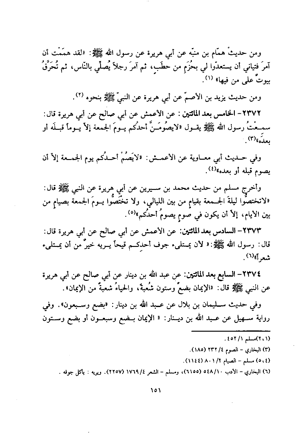 2374 - السَّابِع بعد الْمِائَتَيْنِ: عَن عبد الله بن دِينَار عَن أبي صَالح عَن أبي هُرَيْرَة عَن النَّبِي صلى الله عَلَيْهِ وَسلم قَالَ: " الْإِيمَان بضعٌ وَسِتُّونَ شُعْبَة، وَالْحيَاء شعبةٌ من الْإِيمَان ".