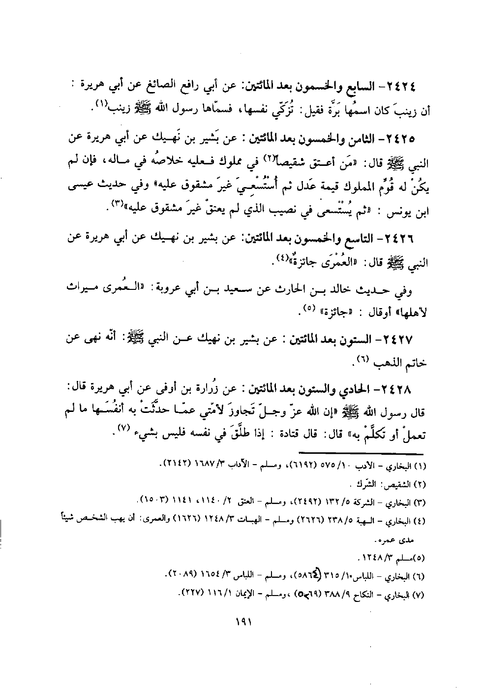 2426 - التَّاسِع وَالْخَمْسُونَ بعد الْمِائَتَيْنِ: عَن بشير بن نهيك عَن أبي هُرَيْرَة عَن النَّبِي صلى الله عَلَيْهِ وَسلم قَالَ: " الْعمريّ جائزةٌ ".