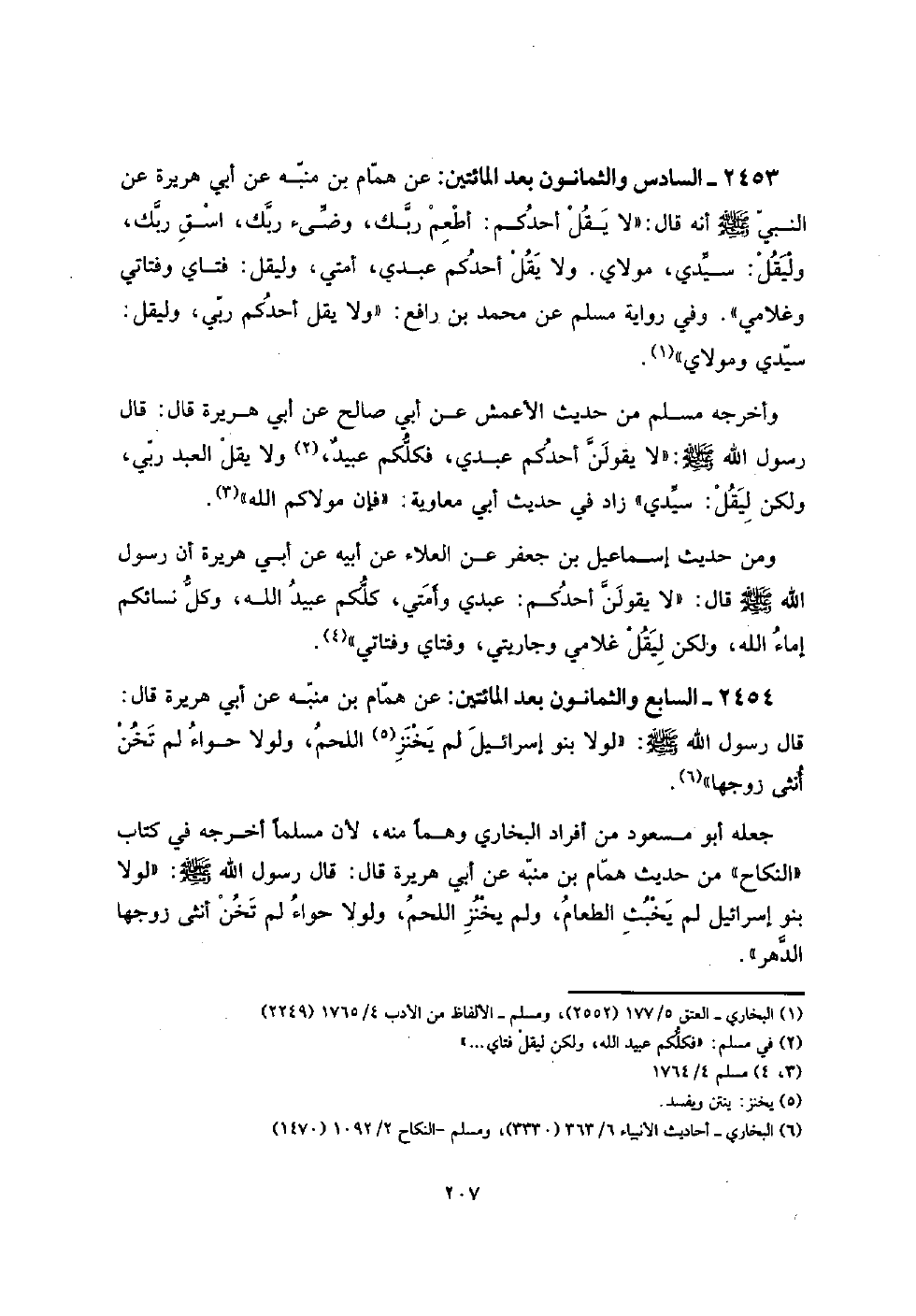 2453 - السَّادِس وَالثَّمَانُونَ بعد الْمِائَتَيْنِ: عَن همام بن مُنَبّه عَن أبي هُرَيْرَة عَن النَّبِي صلى الله عَلَيْهِ وَسلم أَنه قَالَ: