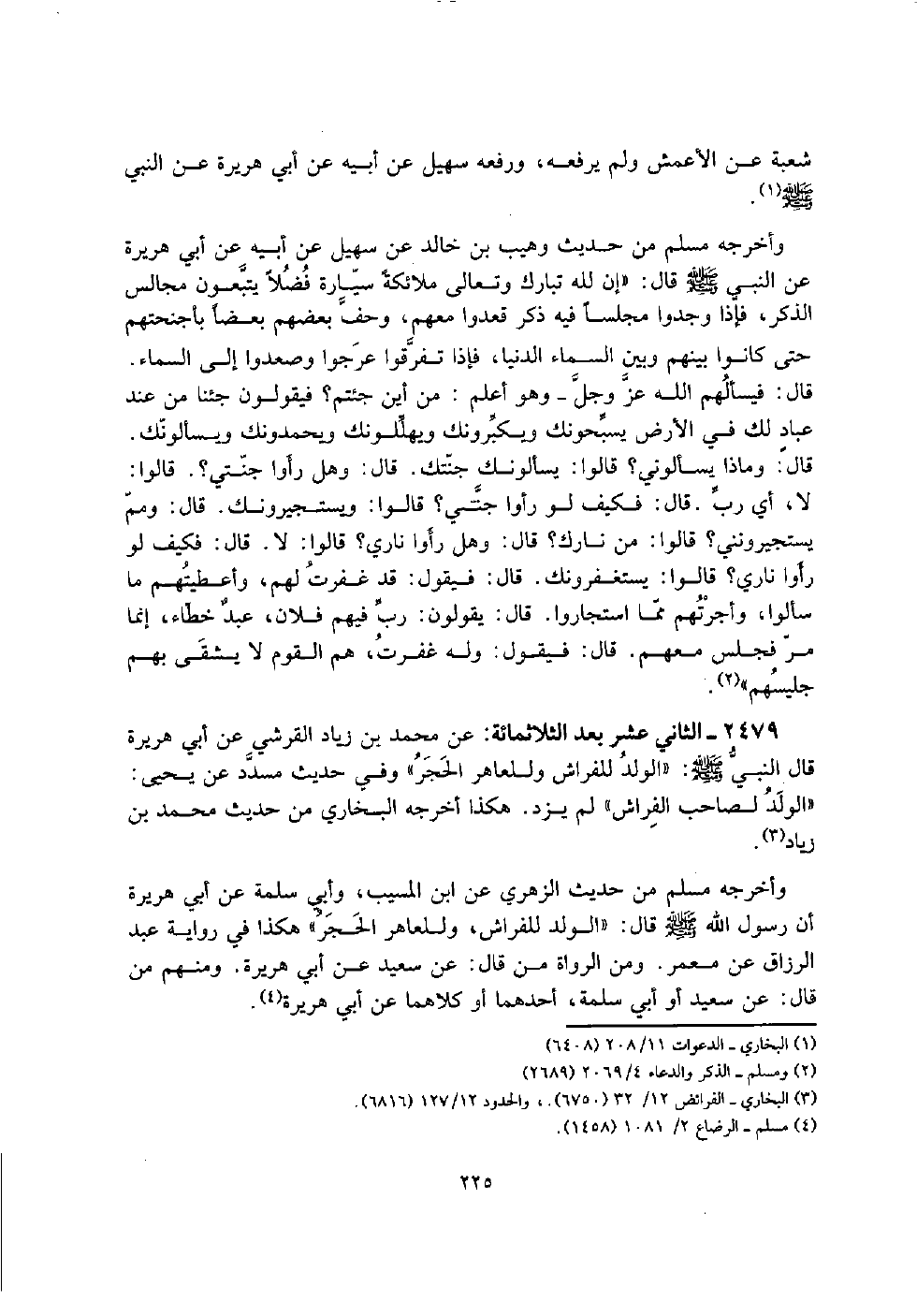2479 - الثَّانِي عشر بعد الثلاثمائة: عَن مُحَمَّد بن زِيَاد الْقرشِي عَن أبي هُرَيْرَة قَالَ النَّبِي صلى الله عَلَيْهِ وَسلم: " الْوَلَد للْفراش وللعاهر الْحجر " وَفِي حَدِيث مُسَدّد عَن يحيى: " الْوَلَد لصَاحب الْفراش " لم يزدْ. هَكَذَا أخرجه البُخَارِيّ من حَدِيث مُحَمَّد بن زِيَاد.