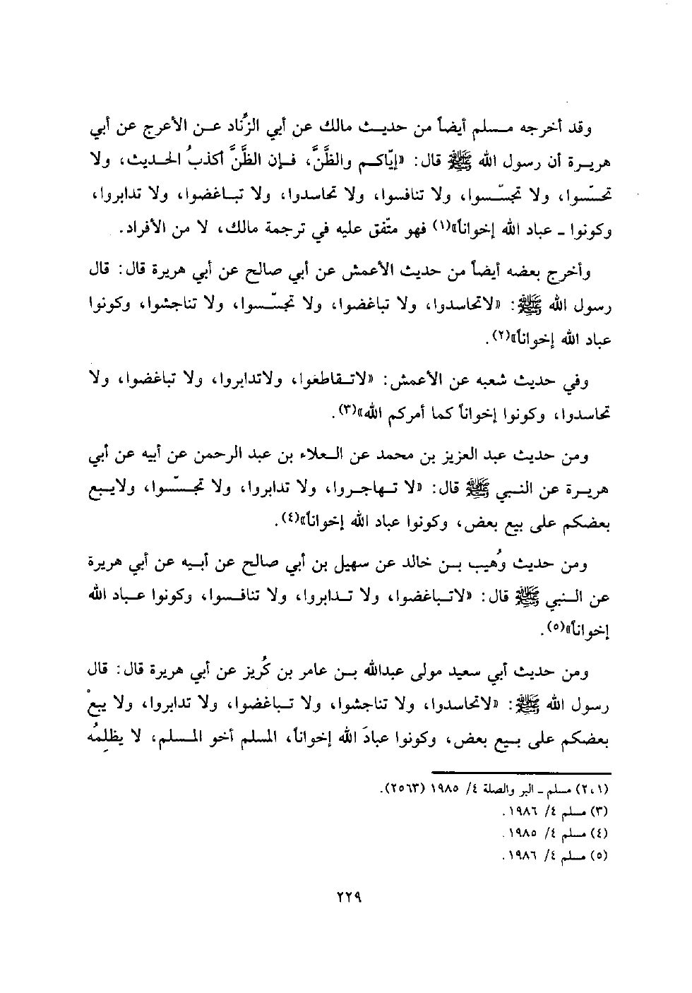 لَا تَحَاسَدُوا، وَلَا تناجشوا، وَلَا تباغضوا، وَلَا تدابروا، وَلَا يبع بَعْضكُم على بيع بعض، وَكُونُوا عباد الله إخْوَانًا، الْمُسلم أَخُو الْمُسلم، لَا يَظْلمه