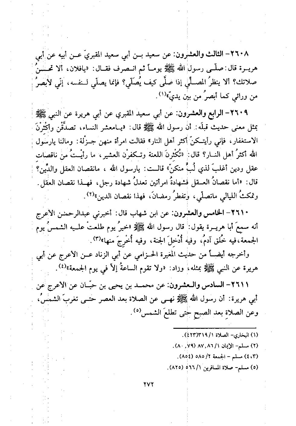 2610 - الْخَامِس وَالْعشْرُونَ: عَن ابْن شهَاب قَالَ: أَخْبرنِي عبد الرَّحْمَن الْأَعْرَج أَنه سمع أَبَا هُرَيْرَة يَقُول: قَالَ رَسُول الله صلى الله عَلَيْهِ وَسلم " خير يَوْم طلعت عَلَيْهِ الشَّمْس يَوْم الْجُمُعَة، فِيهِ خلق آدم، وَفِيه أَدخل الْجنَّة، وَفِيه أخرج مِنْهَا ".