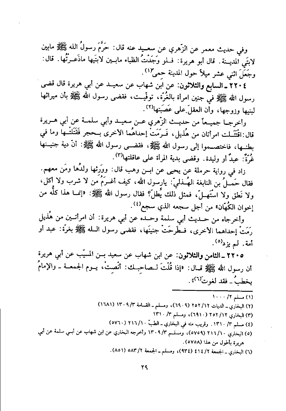 2204 - السَّابِع وَالثَّلَاثُونَ: عَن ابْن شهَاب عَن سعيد عَن أبي هُرَيْرَة قَالَ قضى رَسُول الله صلى الله عَلَيْهِ وَسلم فِي جَنِين امْرَأَة بالغرة، توفيت، فَقضى رَسُول الله صلى الله عَلَيْهِ وَسلم بِأَن مِيرَاثهَا لبنيها وَزوجهَا، وَأَن الْعقل على عصبتها.