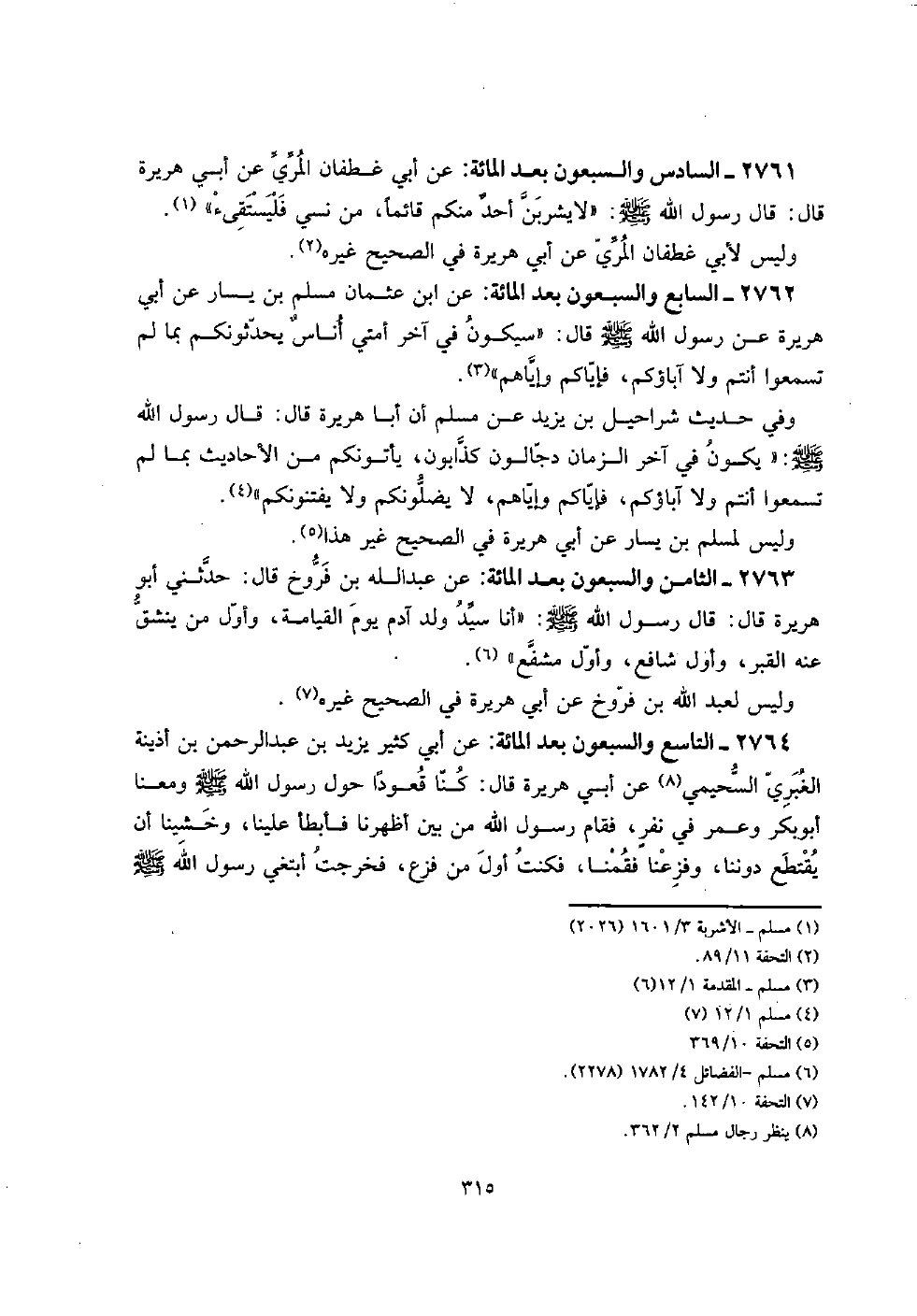 2761 - السَّادِس وَالسَّبْعُونَ بعد الْمِائَة: عَن أبي غطفان المري عَن أبي هُرَيْرَة قَالَ: قَالَ رَسُول الله صلى الله عَلَيْهِ وَسلم: " لَا يشربن أحدٌ مِنْكُم قَائِما، من نسي فليستقئ ".